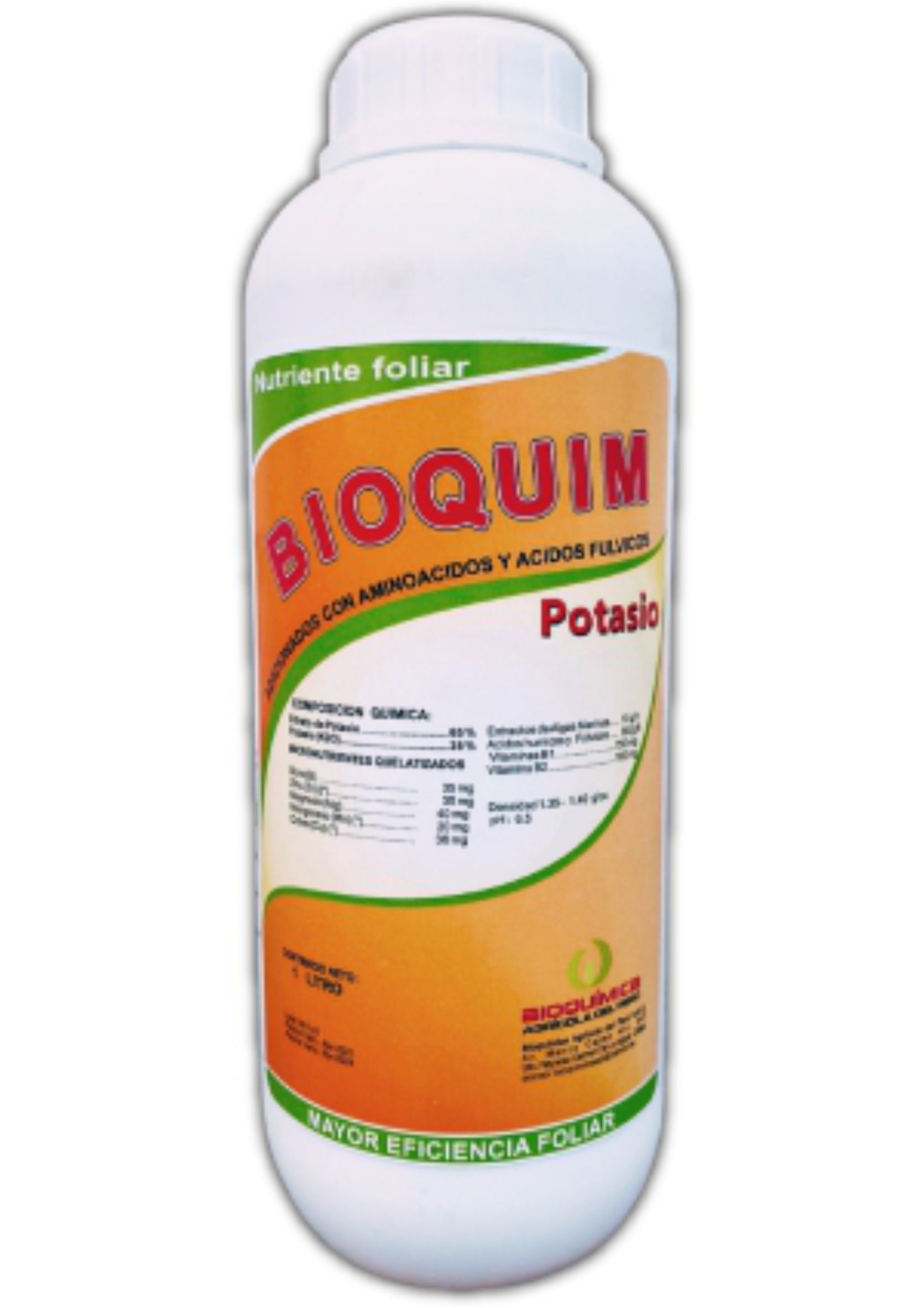 BIOQUIM POTASIO es un fertilizante líquido que es rico en Potasio y balanceado con ácidos orgánicos, extractos de algas marinas y micronutrientes quelatizados, logrando que los nutrientes minerales sean asimilados eficientemente en el tiempo y sean aprovechados en su totalidad.DETALLES DEL PRODUCTO
