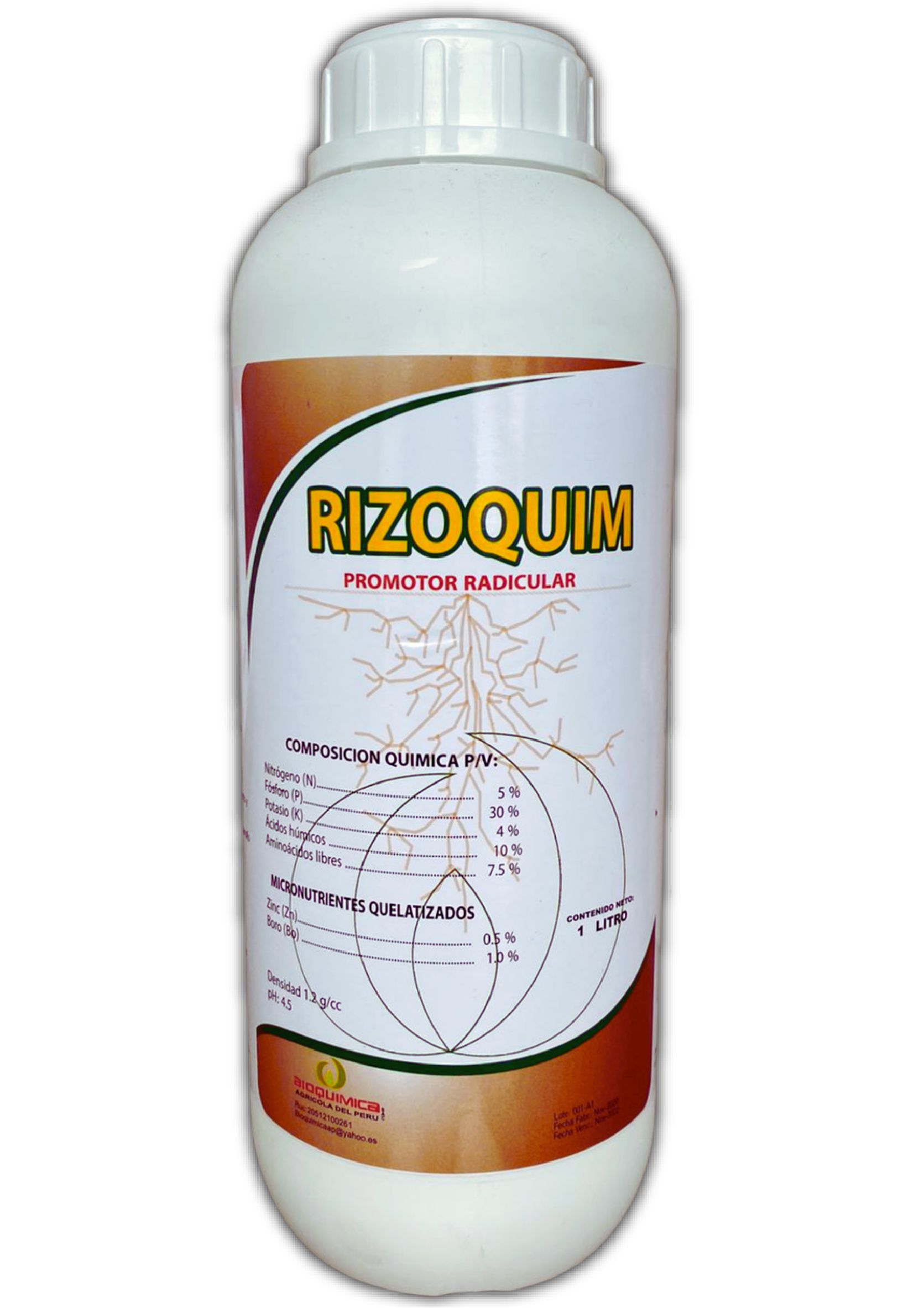 RIZOQUIM promueve el crecimiento radicular en las etapas iniciales formando nuevas raíces vigorosas y abundantes en la planta, aporta nitrógeno, fósforo, potasio y micronutrientes en forma balanceada. Además, incrementa la resistencia a condiciones de estrés en las plantas.DETALLES DEL PRODUCTO